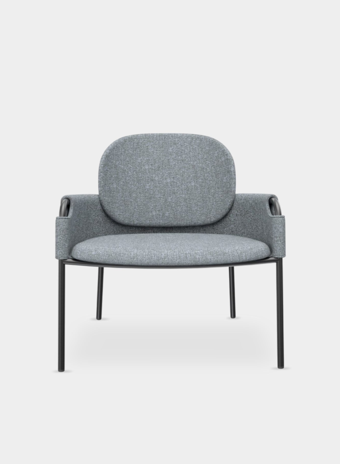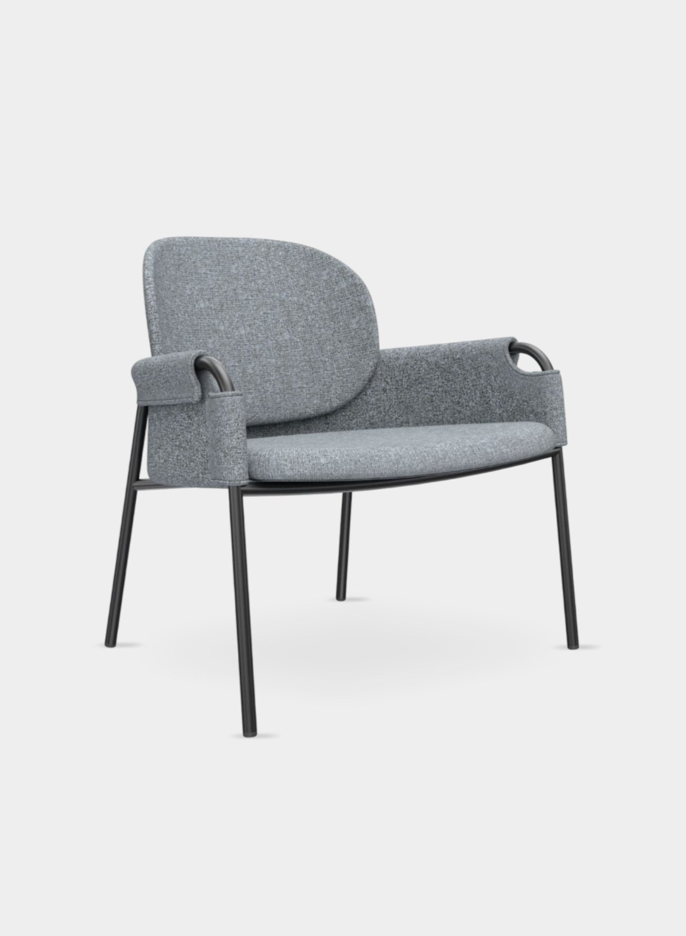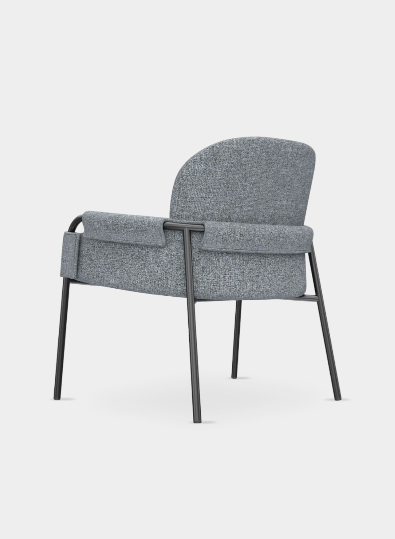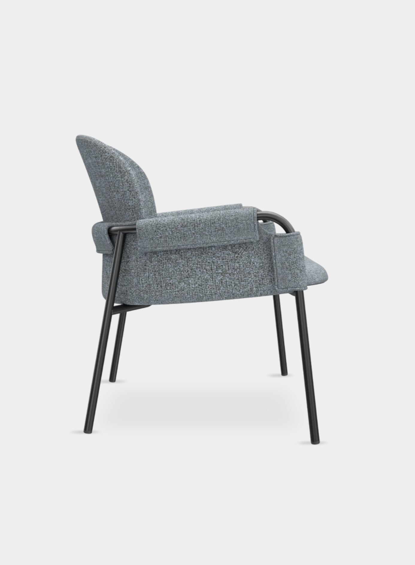 •Asiento de poltrona tapizada en textil de fábrica con apoyabrazos.
